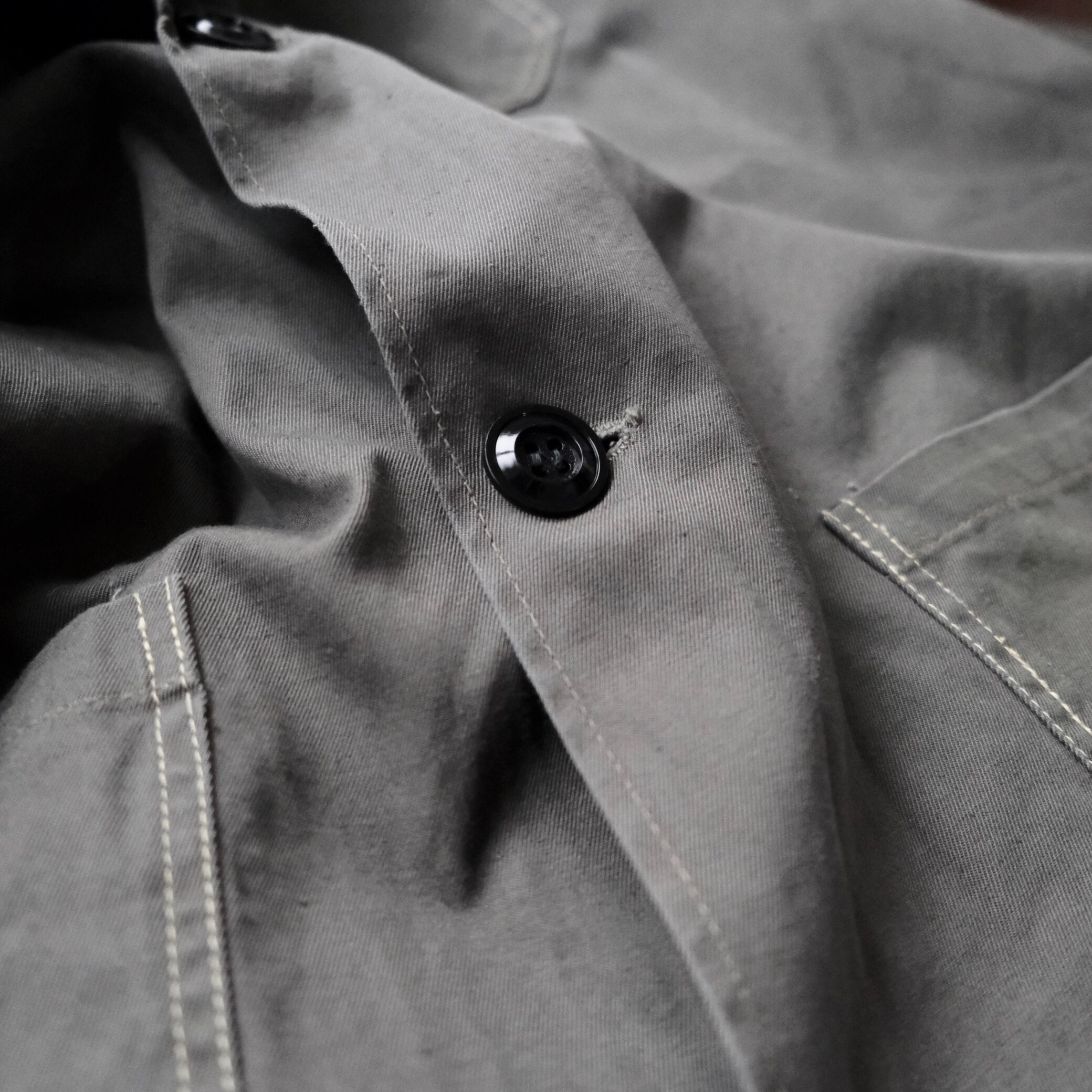 コットンツイル生地、定番のブルーではなくオリーブグリーンカラーが使われています。
