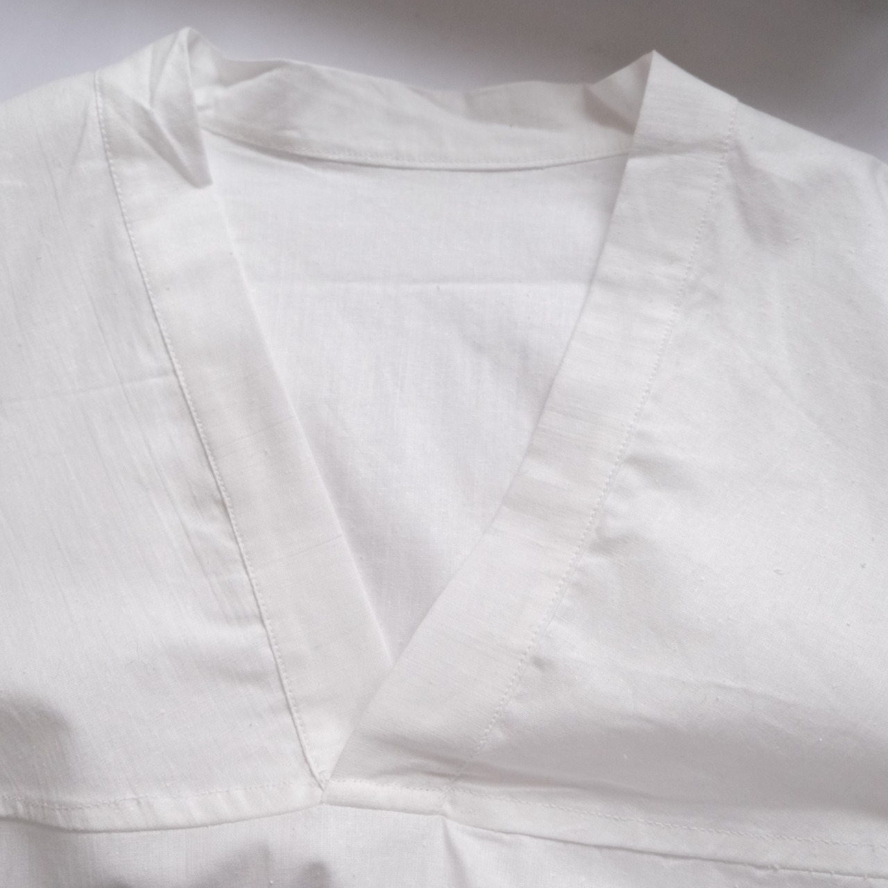 クラシカルな胸のラインやボタンがないVネックも良い雰囲気です。