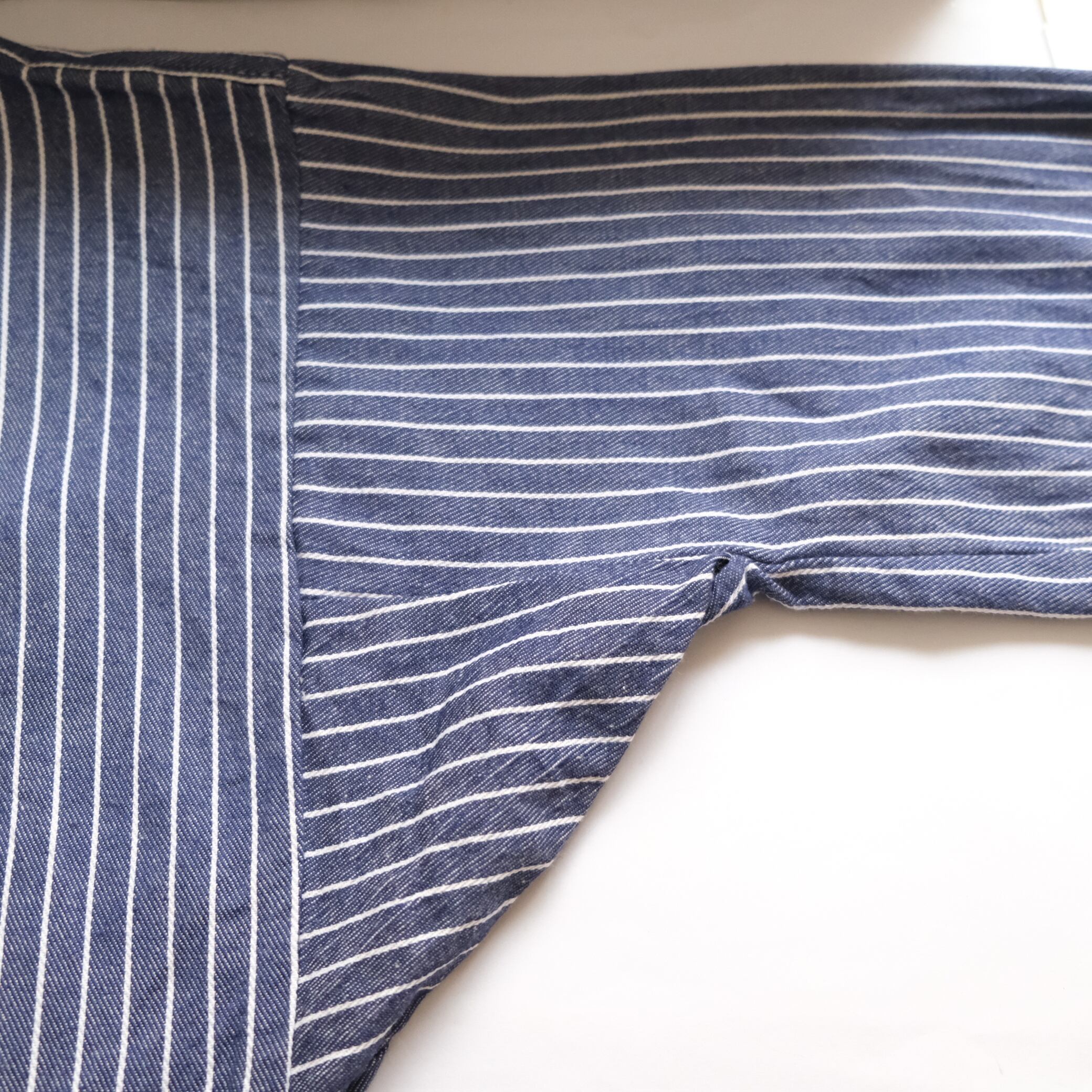 バンドカラー、マチ付、コットン生地を使用した味のあるひと品です。