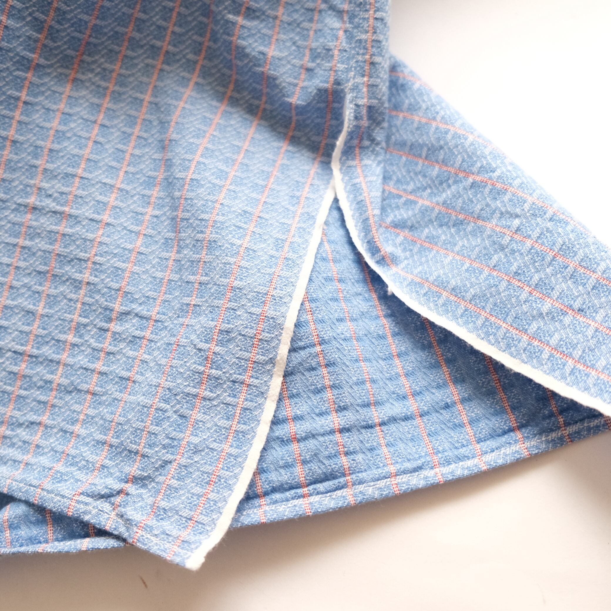 バンドカラー、風合いの良いコットン生地を使用した味のあるひと品です。