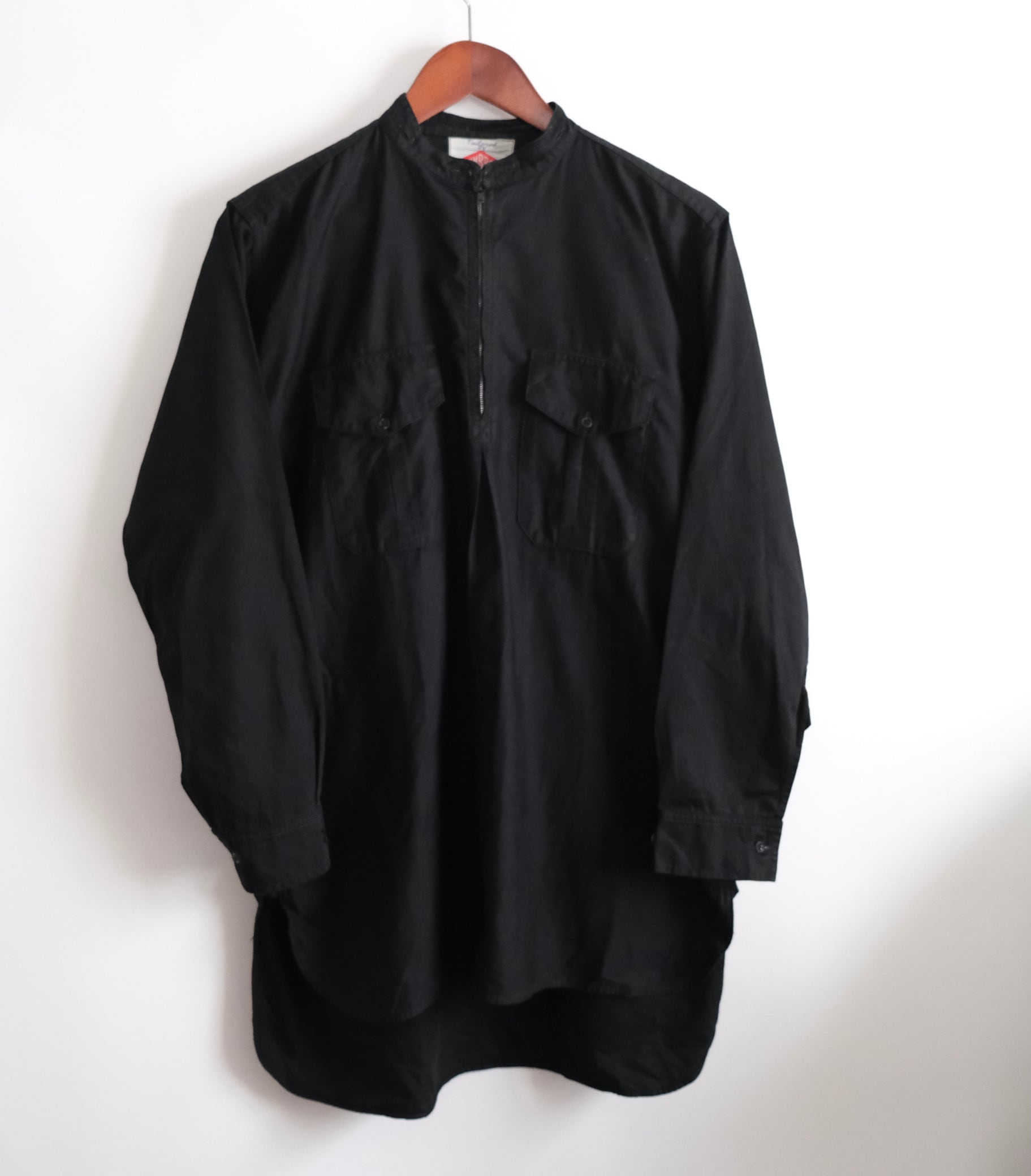 【 UMBRO Band Collar Shirt 】/ イギリス ビンテージ バンドカラー ブラック 長袖シャツ プルオーバー UK