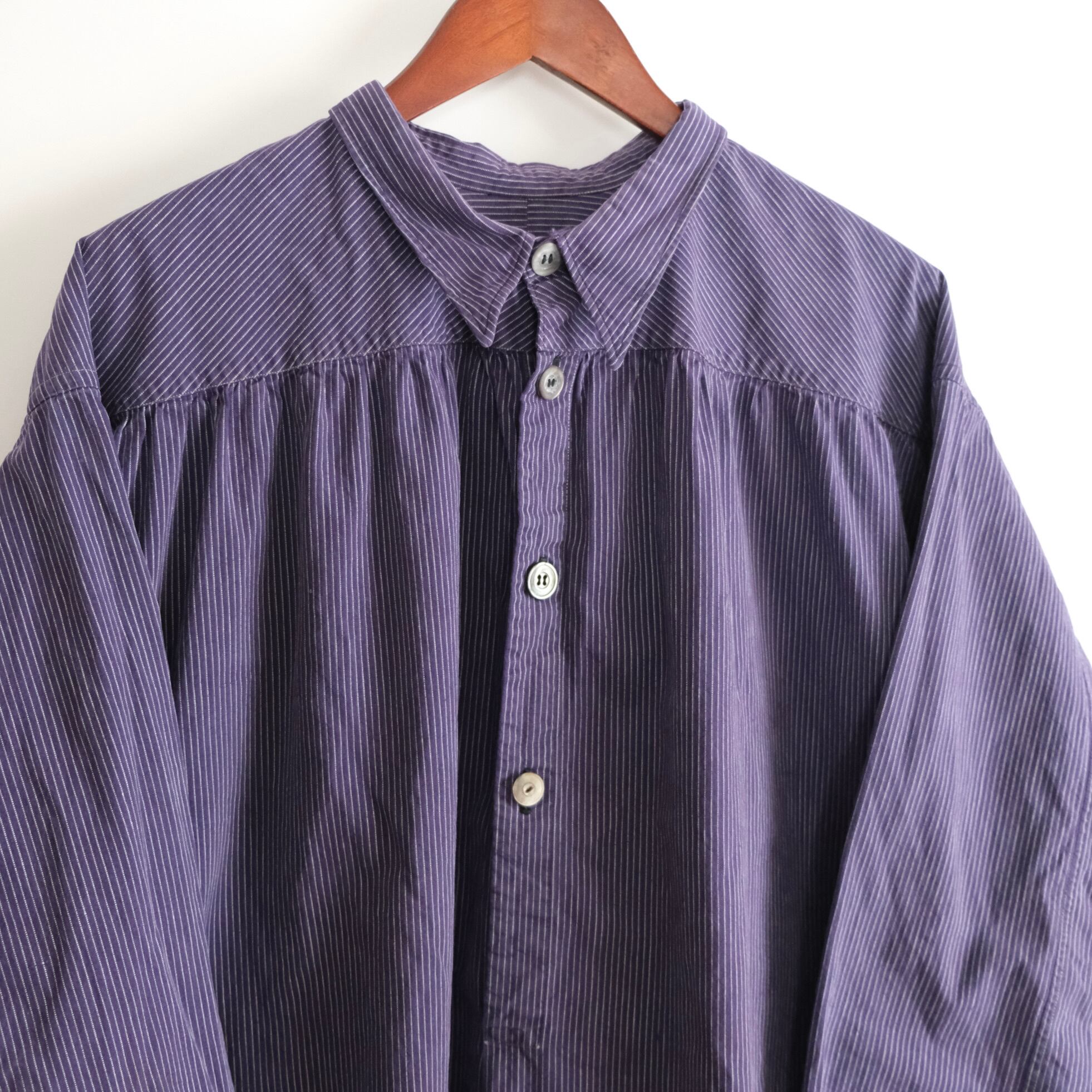 細かなギャザー、点状のストライプ、風合いの良いコットン素材が雰囲気のあるひと品です。
