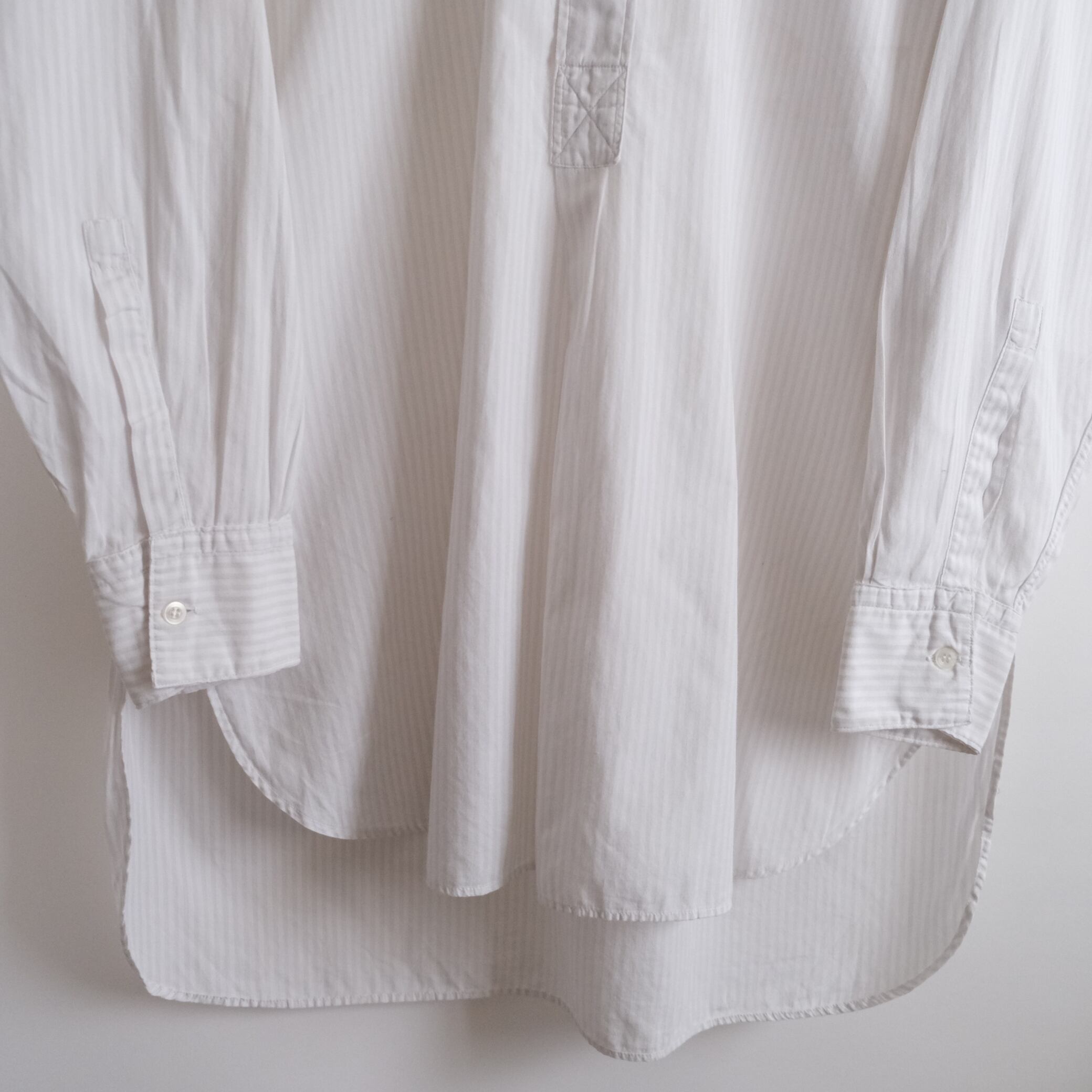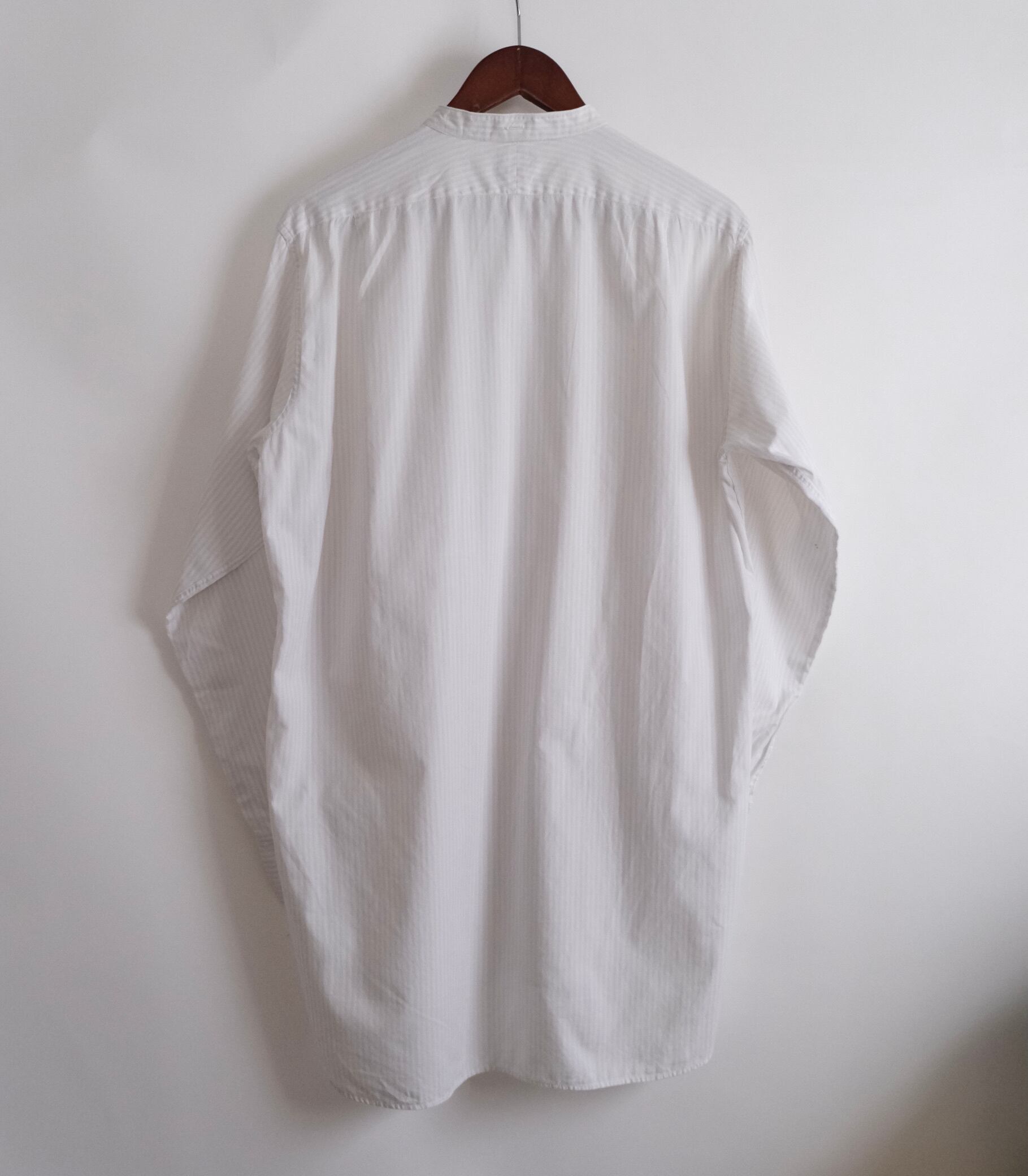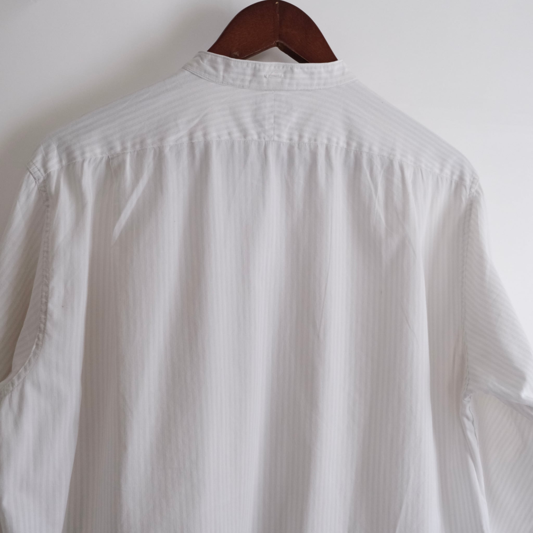 【 BRITISH Band Collar Stripe Shirt 】/ イギリス ビンテージ バンドカラー ストライプ 長袖シャツ プルオーバー