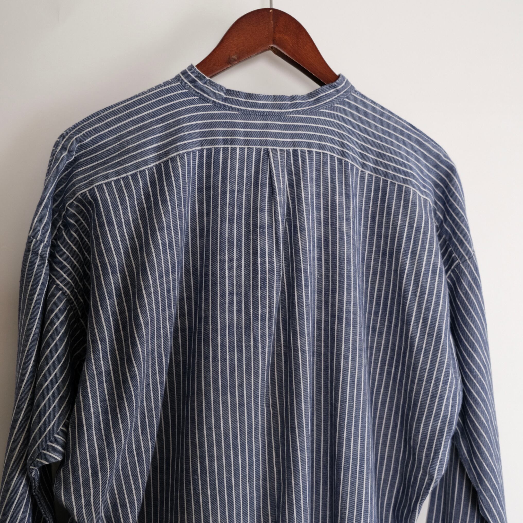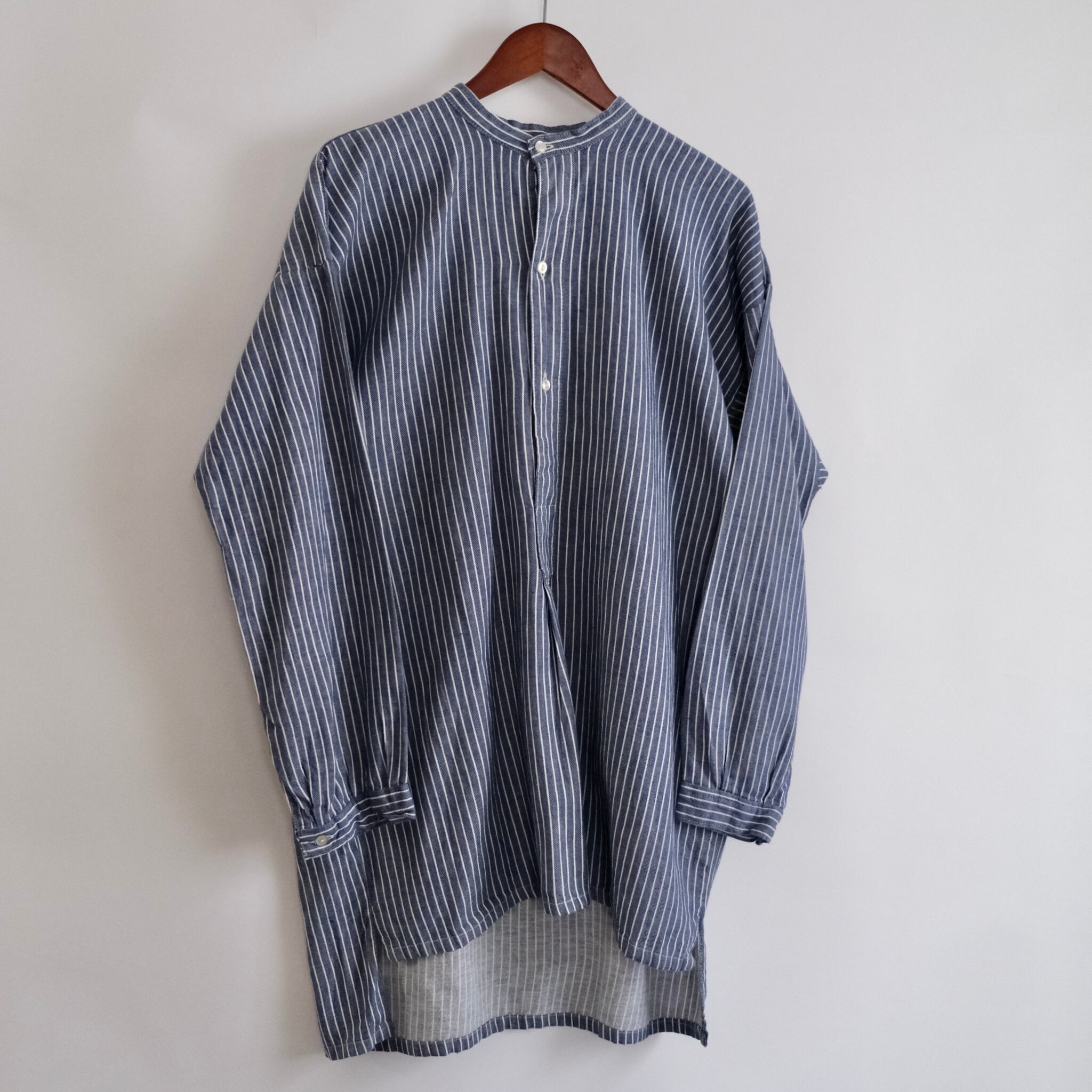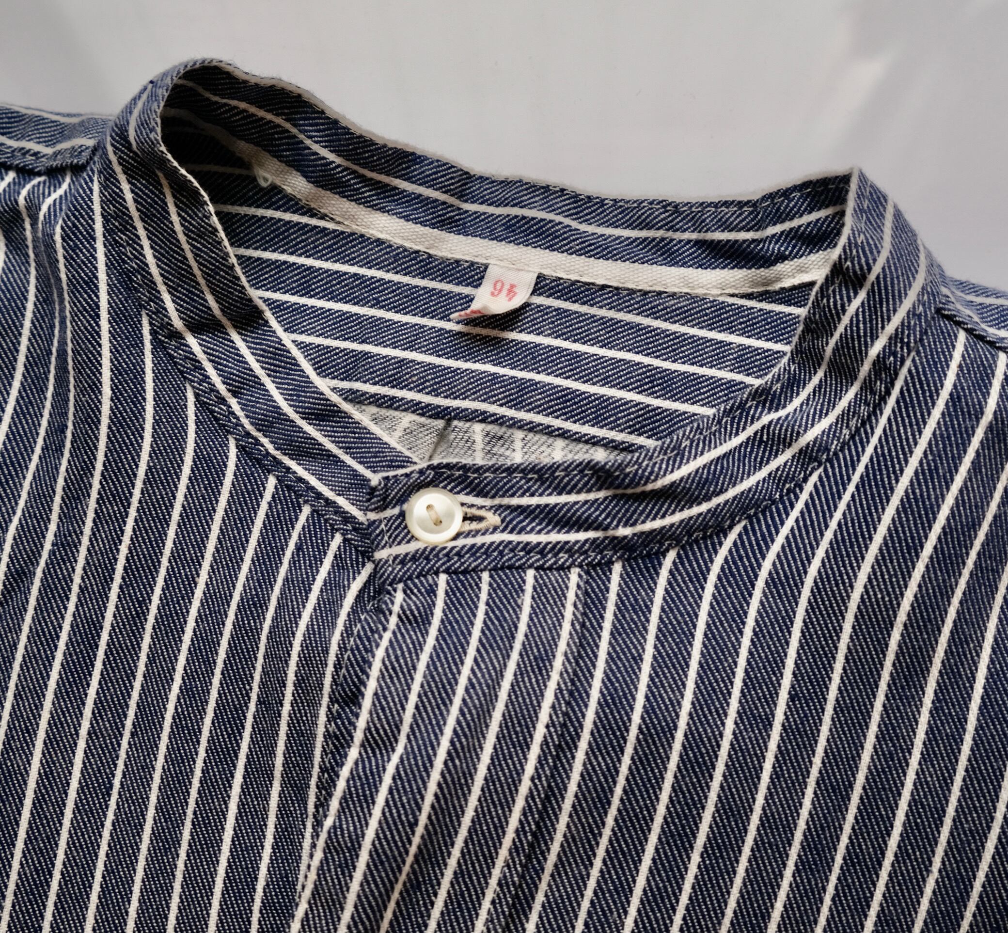 バンドカラー、柔らかなコットン生地を使用した味のあるひと品です。
