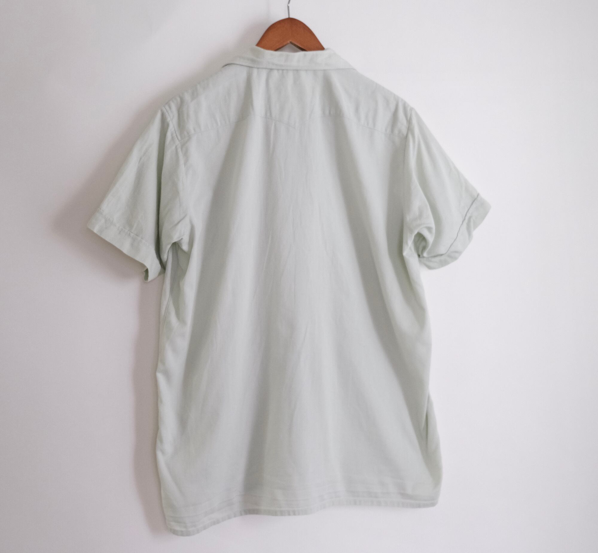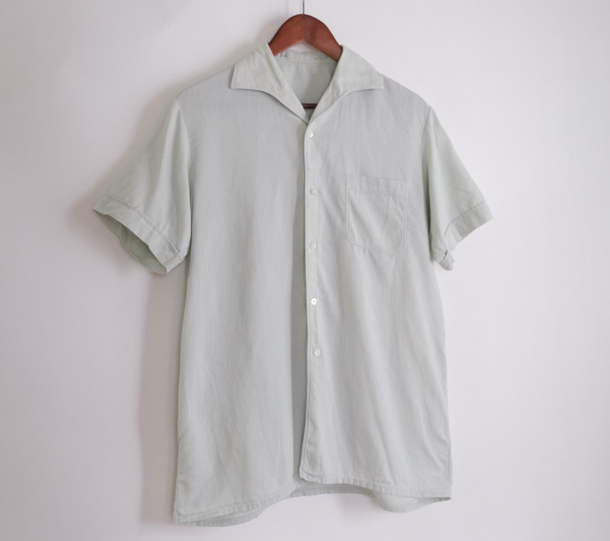 【 EURO WORK 】Shark color Shirt / ヨーロッパ ビンテージ シャークカラー 半袖シャツ オープンカラー 開衿