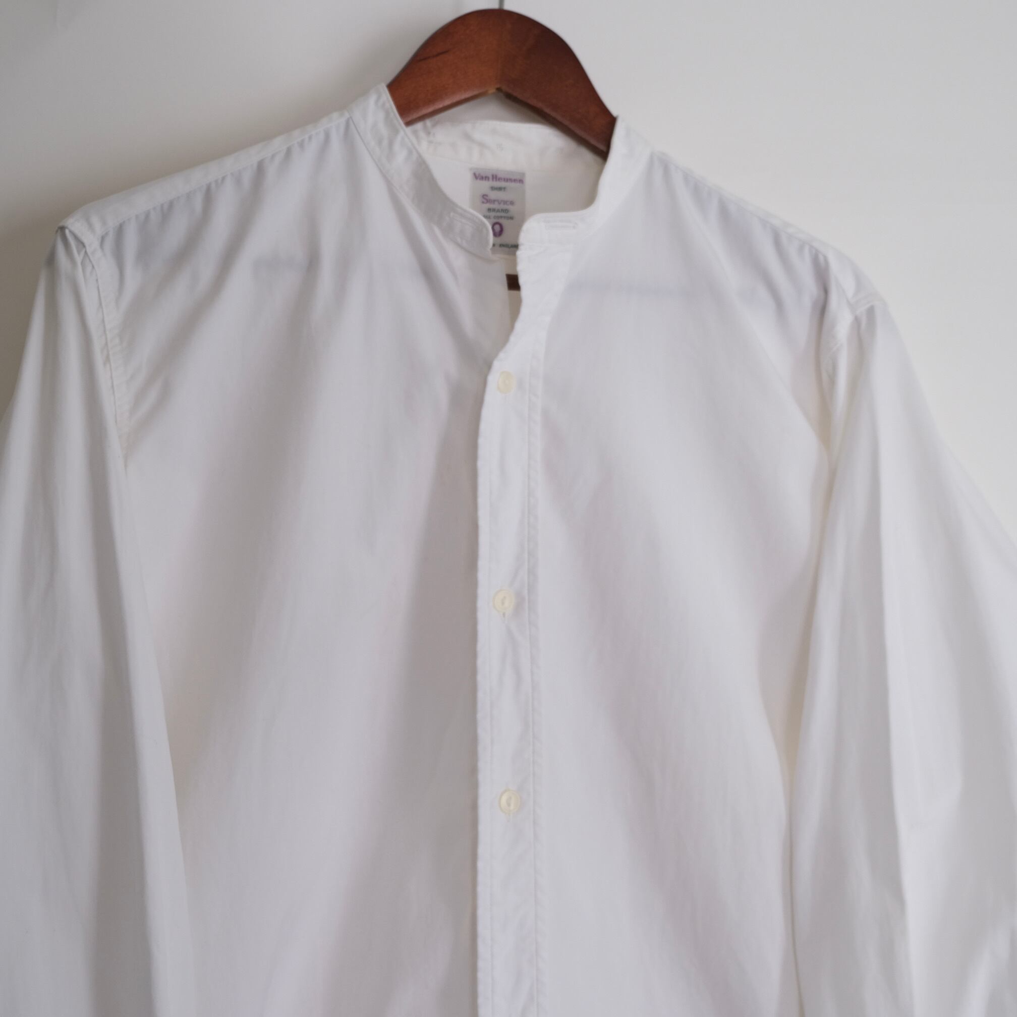 【 Van Heusen Band Collar Shirt 】/ イギリス ビンテージ バンドカラー ホワイト 長袖シャツ