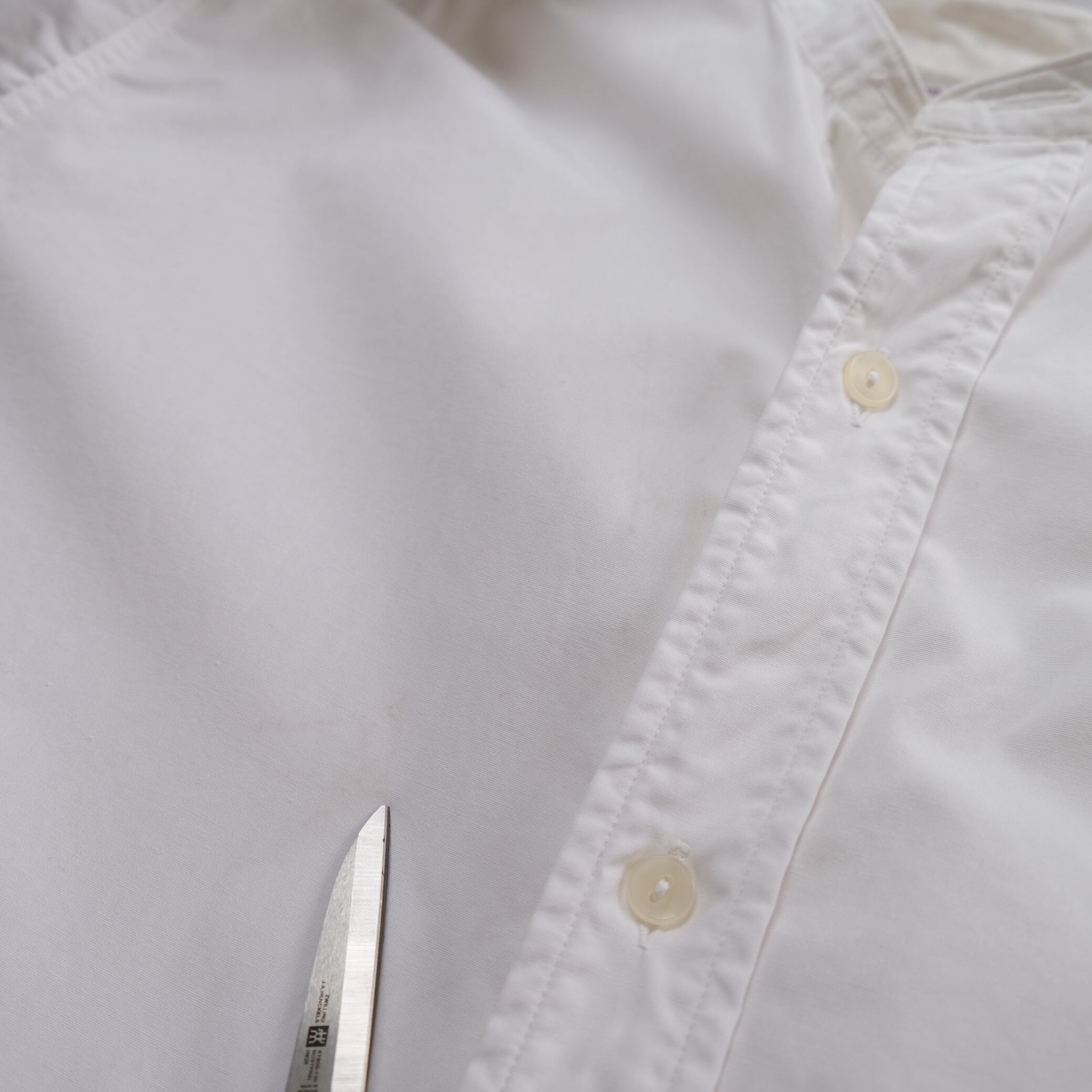 風合いの良いコットン100%生地、バンドカラー、VanHeusen製、