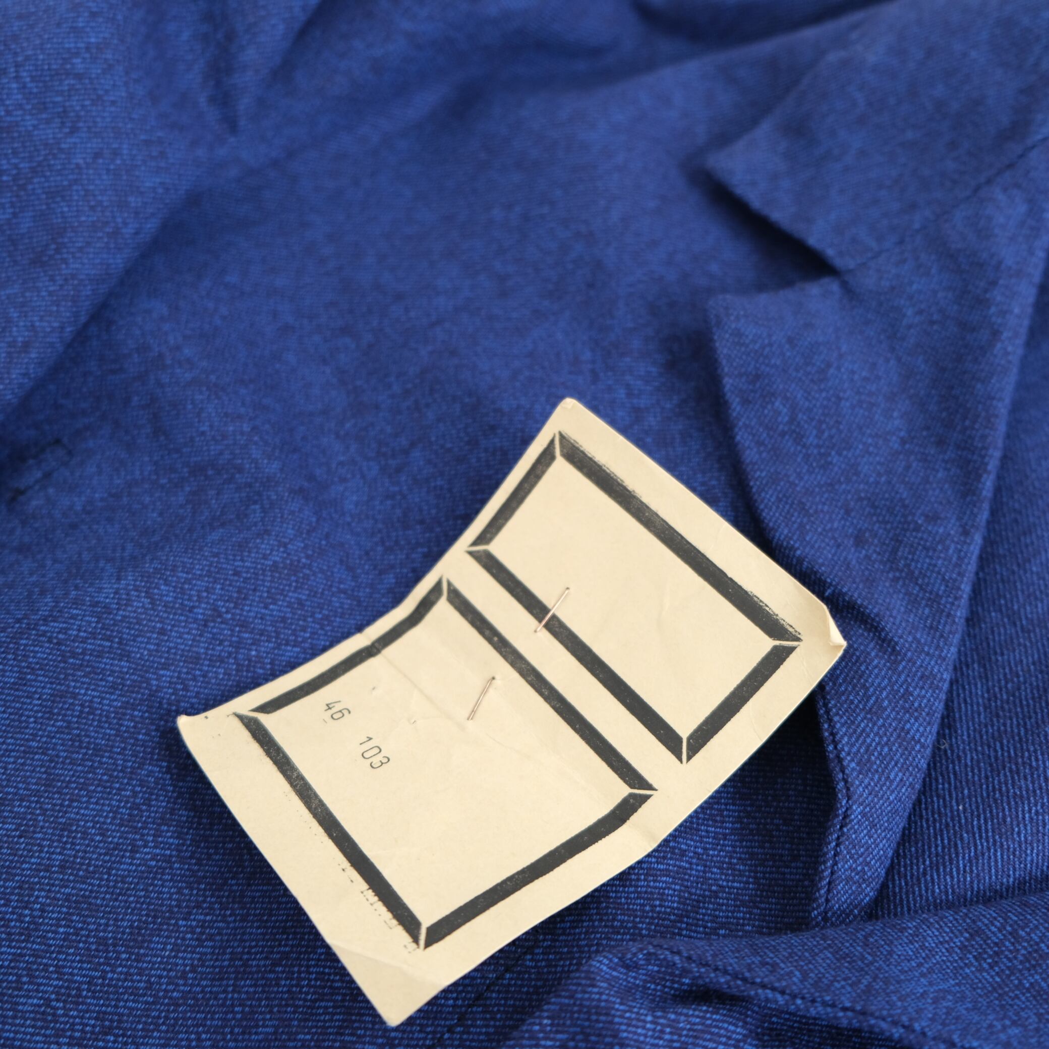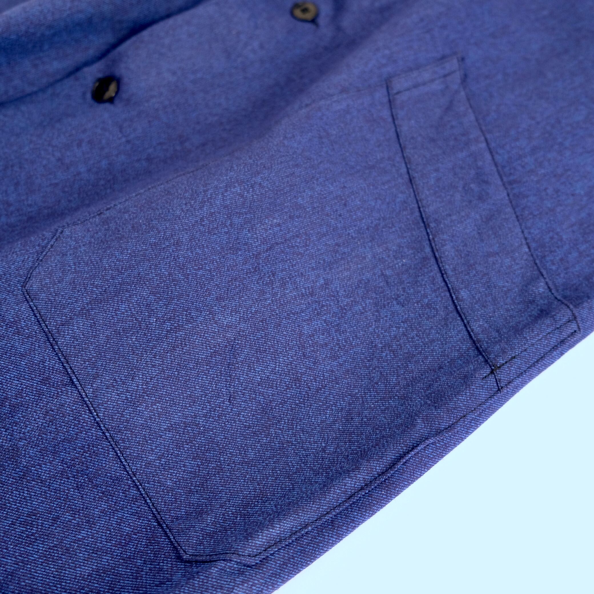 風合いの良いコットンシャンブレー生地を使用、ブルーシャンブレーが特徴的です。