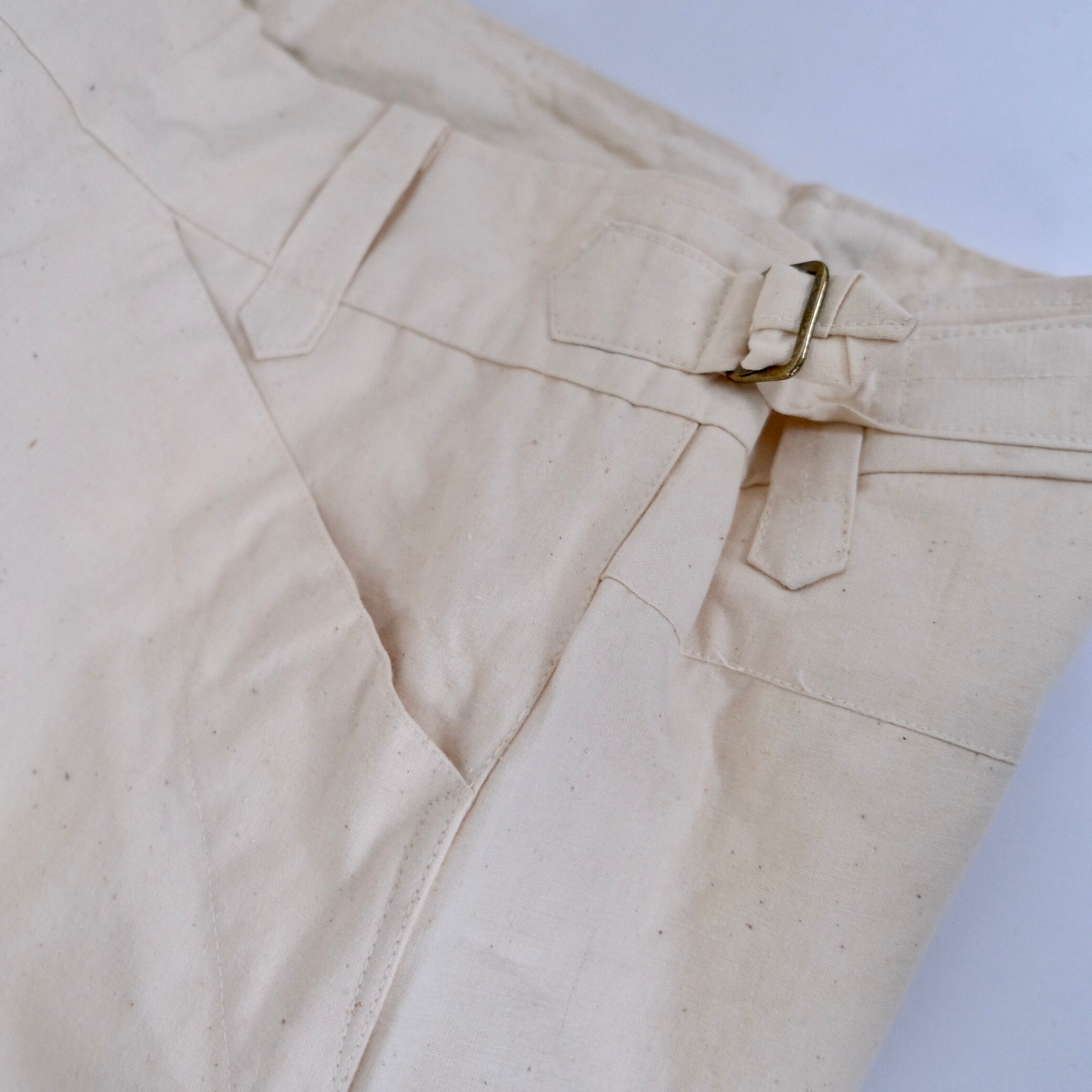 風合いの良い生成りコットン素材を使用したミリタリーパンツ。