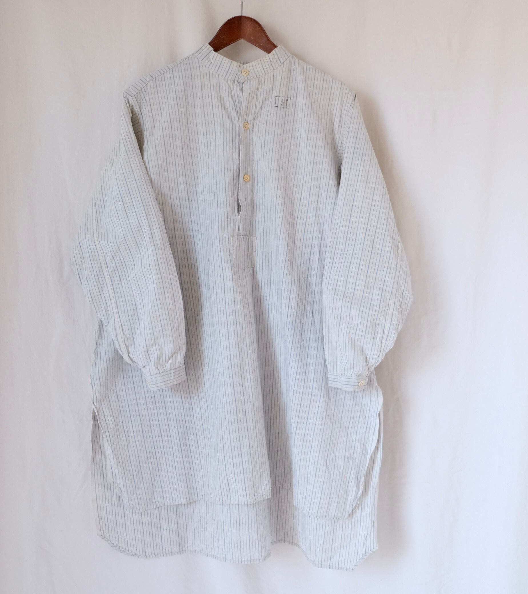 【 FRENCH ARMY 】 Cotton Stripe Pullover Shirt / フランス軍 ビンテージ バンドカラー ストライプ シャツ スモック